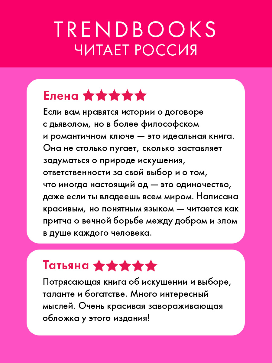 Один из самых популярных романов викторианской Англии в современном оформлении от Trendbooks! Мистический роман о сделке с дьяволом, переосмысливающий образ Сатаны.