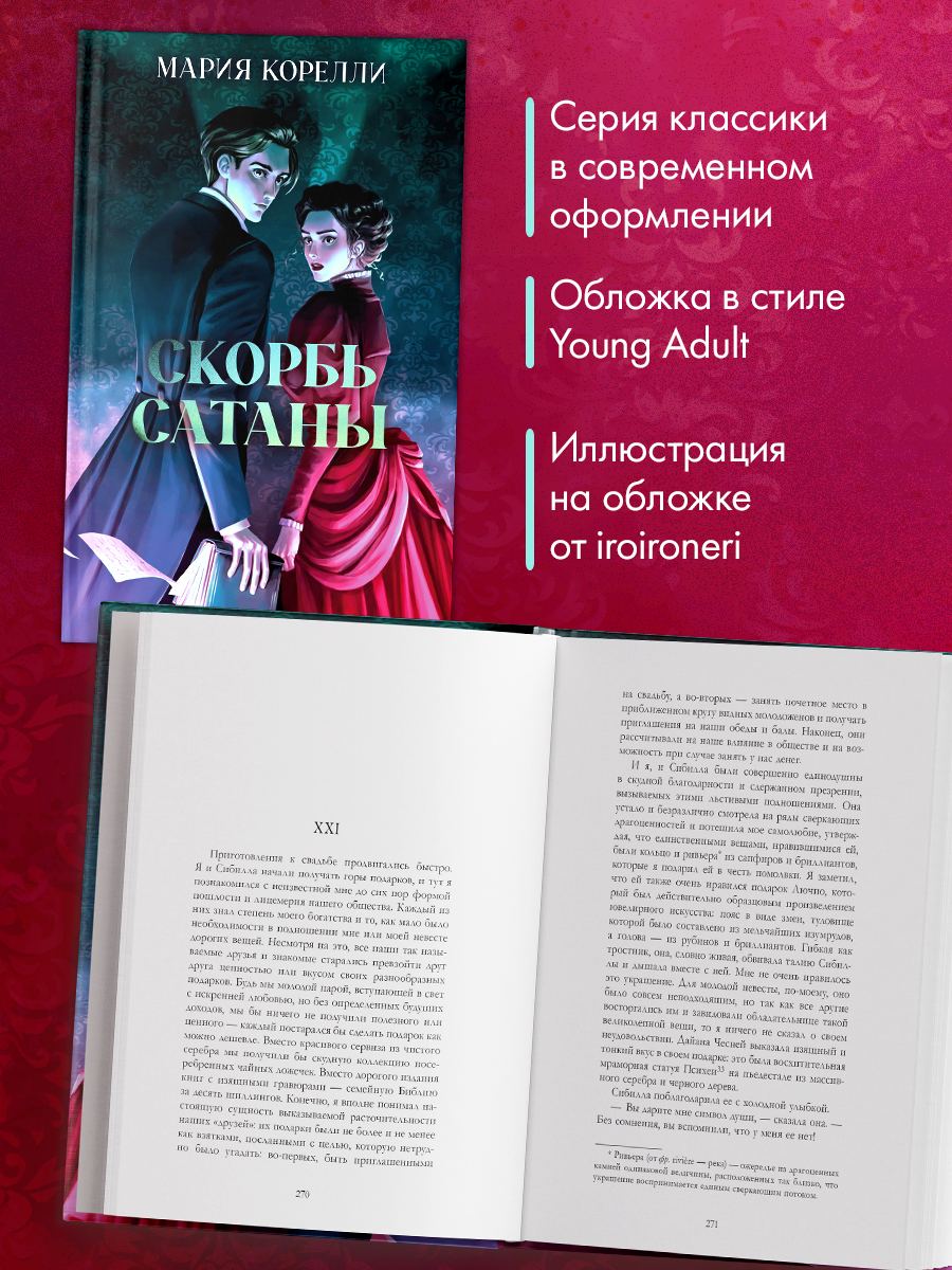 Если вы хотите найти книги для подростков (книги 16+) в подарок, увлекательные книги классика, книги романы про писателей, интересные книги, заставляющие задуматься, романы с мотивом договора с дьяволом, книга «Скорбь Сатаны» для вас. Эта книга роман поднимает вечные вопросы добра и зла, соблазна и борьбы с ним.