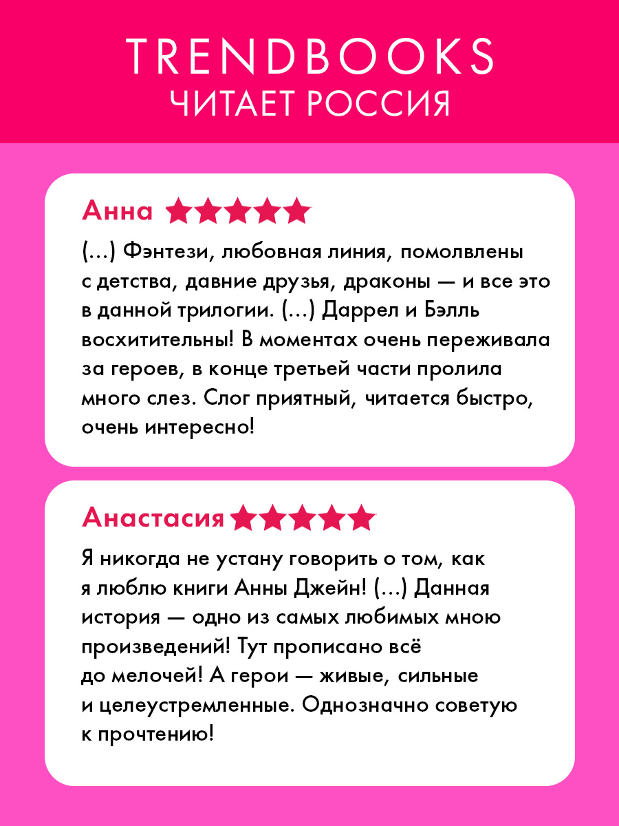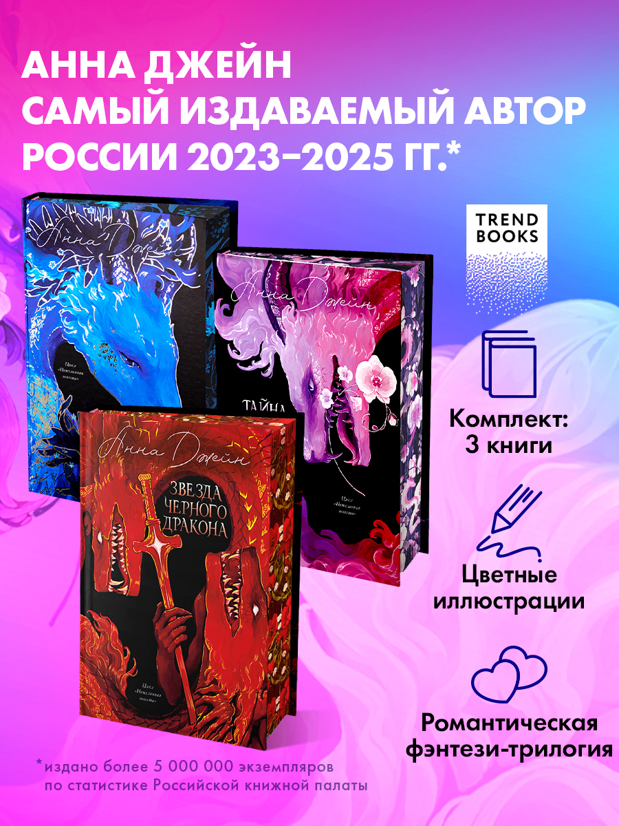 Комплект книг «Наследница Черного дракона», «Тайна Черного дракона» и «Звезда Черного дракона» — это эксклюзивное коллекционное издание популярного фэнтези-цикла Анны Джейн «Нежеланная невеста». Мерцающая обложка от Sapphiringore, невероятные цветные иллюстрации Miorin, иллюстрированный обрез и атмосферный дизайн страниц.