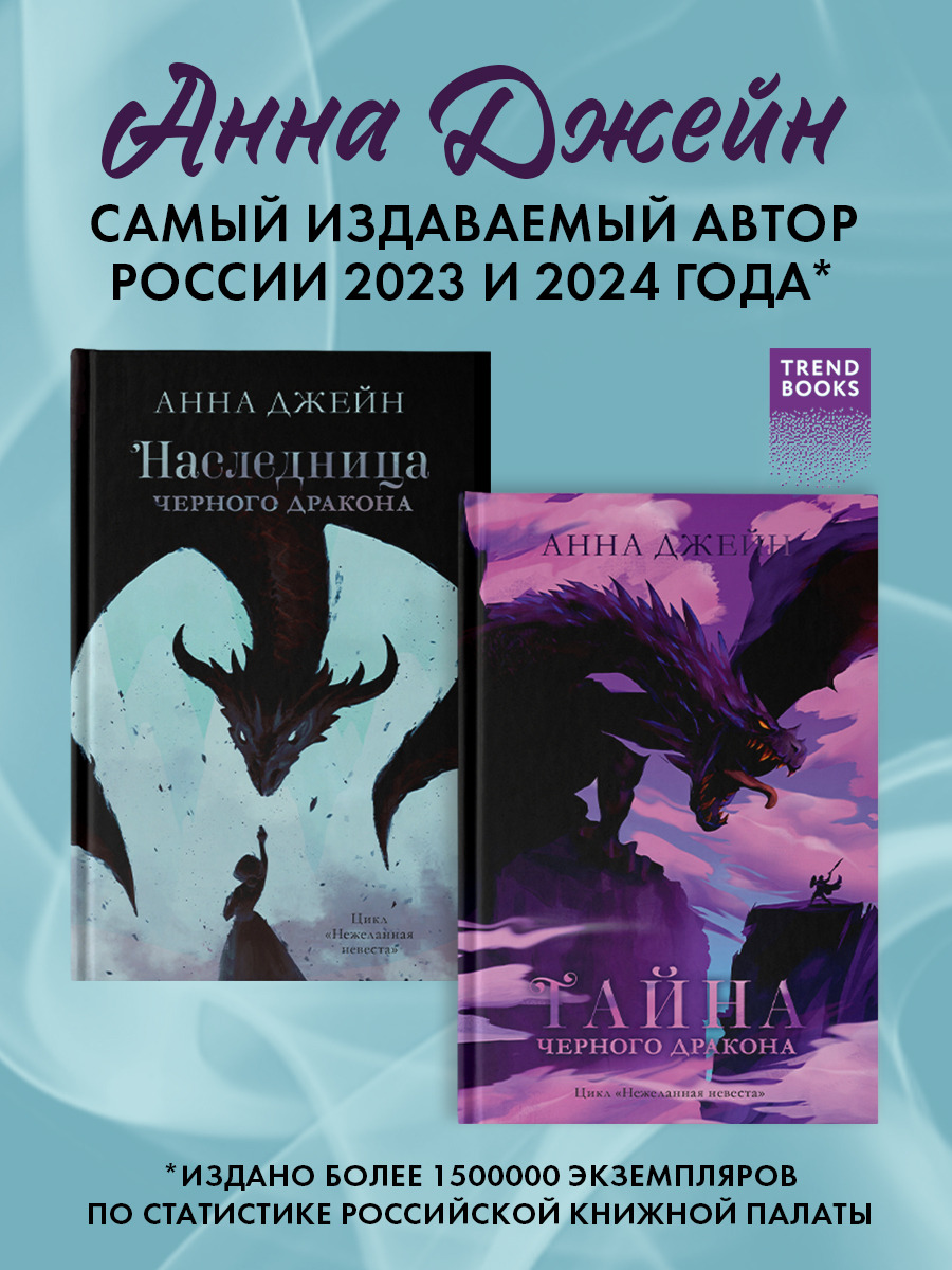 Анна Джейн — популярный автор любовных и young-adult романов для подростков 16+ и взрослых. Ее книги — блистательная современная художественная проза о любви, романтике, тайнах и жизненных хитросплетениях, приправленные отличным юмором. Романтические бестселлеры Анны “Кошмарных снов, любимая”, “Подарок ангела”, “Запрети любить”, “Восхитительная ведьма”, “Влюбленная ведьма”, “Поклонник”, “Наследница Черного дракона”, “Тайна Черного дракона”, “Звезда Черного дракона”, “Твое сердце будет разбито”, “По осколкам твоего сердца”, “Запрети любить” от редакции Trendbooks уже много лет находят живой отклик в сердцах читателей и насчитывают свыше 22 миллионов прочтений онлайн. Комплект книг Анны Джейн "Наследница Черного дракона", "Тайна Черного дракона" — прекрасный романтический подарок или прекрасное дополнение к праздничному подарочному набору для любимой девушки, женщины, подруге, сестре или маме на день рождения, 8 Марта, День святого Валентина (14 февраля), Новый год (НГ) и любой другой праздник.