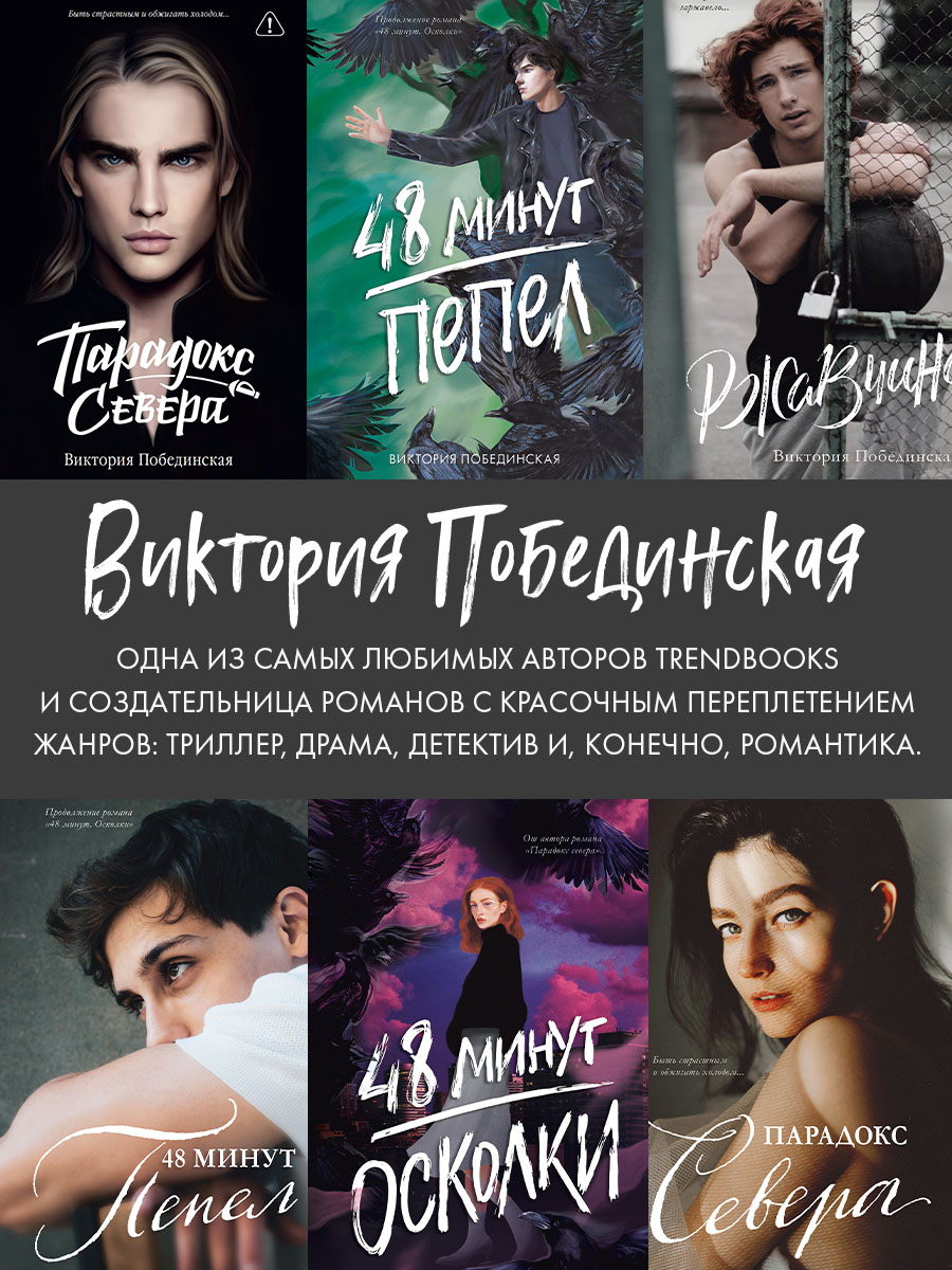Виктория Побединская — популярный писатель, автор young adult бестселлеров “48 минут. Осколки” и “48 минут. Пепел” для подростков (18+) и взрослых. Ее книги увлекают яркими историями любви, закрученными сюжетами и вдохновляют бороться за свои мечты, несмотря на все трудности и препятствия.