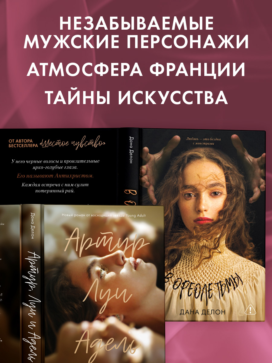 "В ореоле тьмы", "Артур, Луи и Адель" Даны Делон — книги об огромной всепоглощающей любви, взрослении и тайнах прошлого, которые очаруют читателей волшебной атмосферой Франции, хитросплетениями сюжета и сильными характерами героев.
