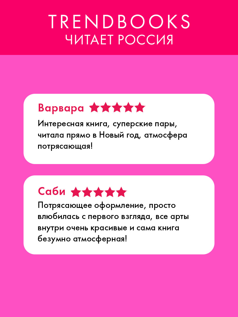 Дана Делон («Артур, Луи и Адель», «Будь моим», «Валентин», «Шестое чувство», «В ореоле тьмы», «Непрожитая жизнь», «Уроки нежности», «Падающая Звезда»), Ксюша Левина («Держись от него подальше», «Дом грозы», «Академия Весны») и Виктория Побединская («48 минут. Осколки», «48 минут. Пепел», «Парадокс Севера», «Ржавчина») — популярные авторы «Трендбукс», объединившиеся, чтобы создать настоящий Young Adult хит, который подарит хорошее настроение и поможет проникнуться атмосферой праздника.