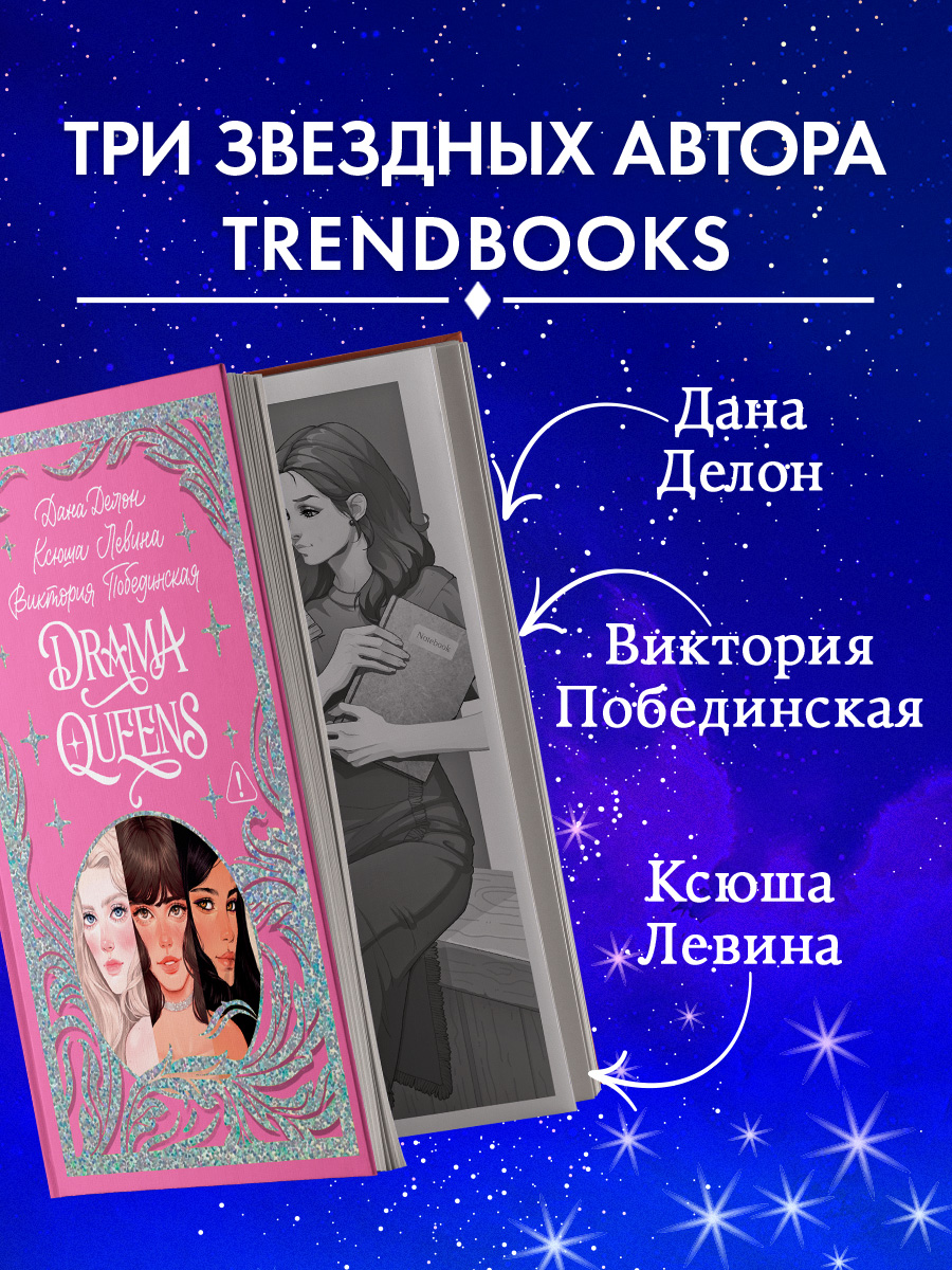 «Drama Queens, или Переполох на школьном балу» — уникальный роман, который написали три любимых автора редакции Trendbooks. Ксюша Левина, Дана Делон, Виктория Побединская — каждая из них рассказала по одной из трех историй.