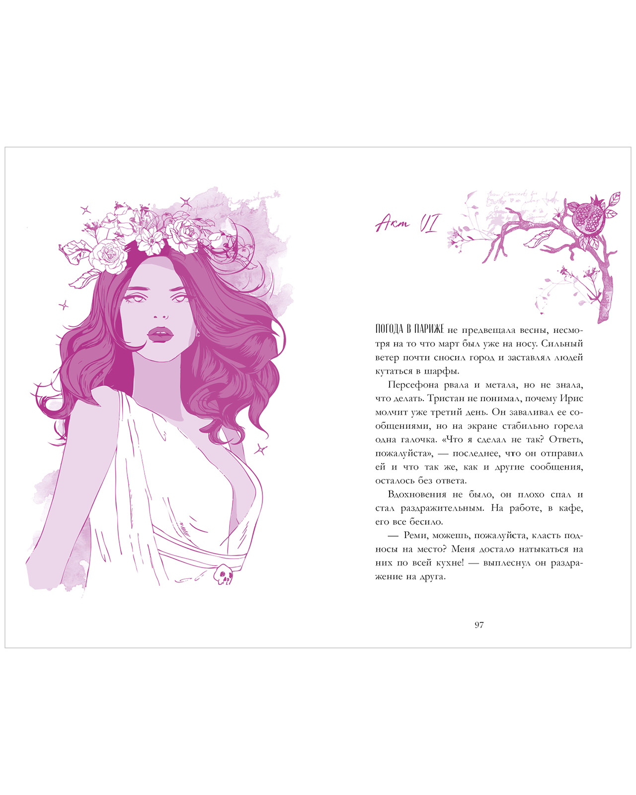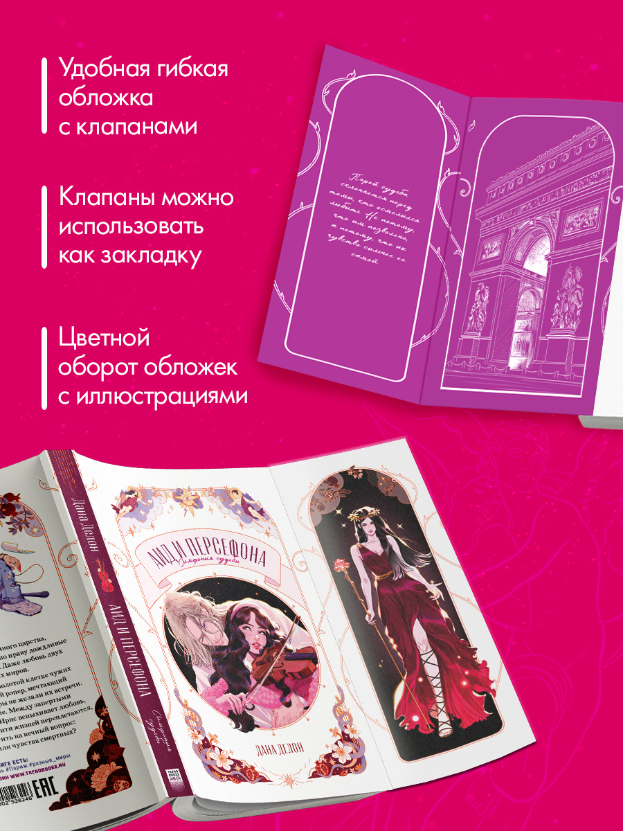 Невероятная гибкая обложка с иллюстрированными клапанами от Карины Яшагиной, атмосферные пурпурные иллюстрации и волшебный дизайн страниц — потрясающее оформление, за которое читатели полюбили серию Trendbooks Novella!