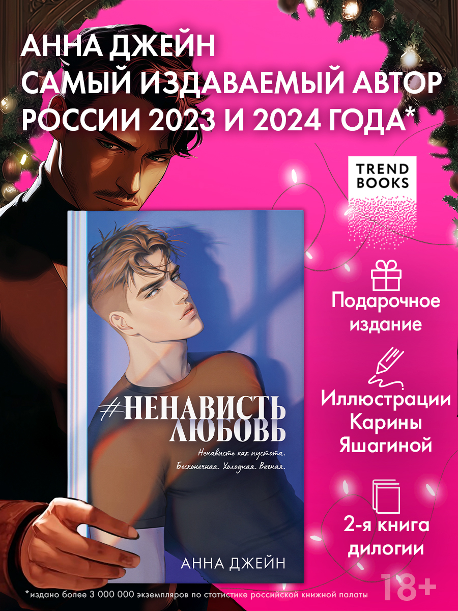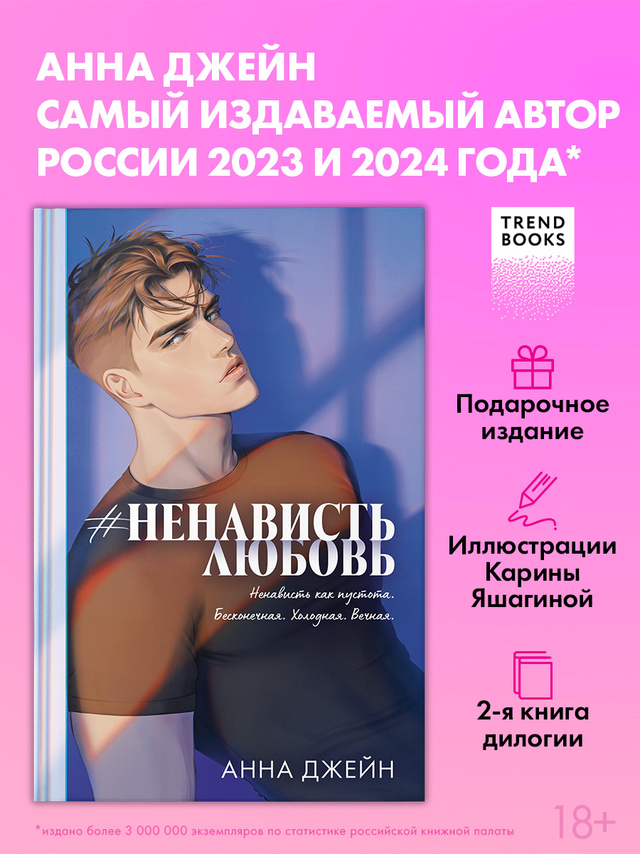 Роман «#НенавистьЛюбовь» — продолжение популярной дилогии Анны Джейн. История сладкой парочки #ДашаДаня получает новое развитие. Герои становятся старше, их проблемы — серьезнее, а чувства — ярче. С новой обложкой от Карины Яшагиной и иллюстрациями важных сцен из романа, дилогия покорит сердца настоящих книжных романтиков и станет украшением вашей книжной коллекции.