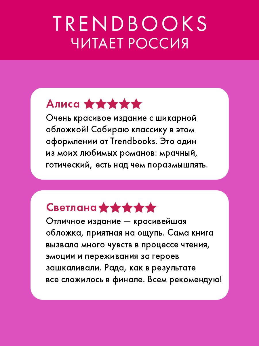 «Грозовой Перевал» в стильной обложке от редакции Trendbooks станет отличным подарком как для тех, кто впервые знакомится с произведением Эмили Бронте, так и для поклонников легендарного романа.