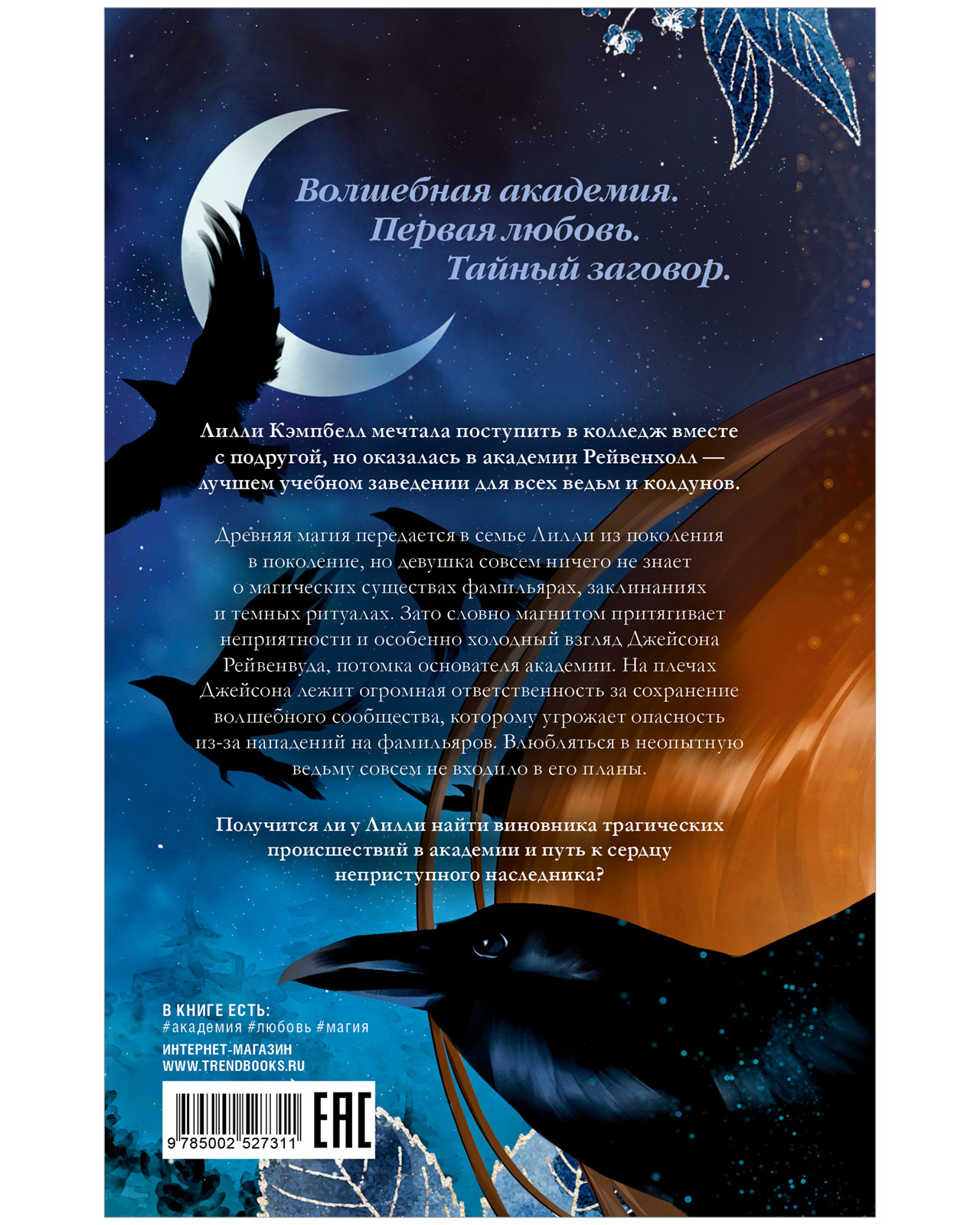 Древняя магия передается в семье Лилли из поколения в поколение, но девушка совсем ничего не знает о магических существах фамильярах, заклинаниях и темных ритуалах. Зато словно магнитом притягивает неприятности и особенно холодный взгляд Джейсона Рейвенвуда, потомка основателя академии. На плечах Джейсона лежит огромная ответственность за сохранение волшебного сообщества, которому угрожает опасность из-за нападений на фамильяров. Влюбляться в неопытную ведьму совсем не входило в его планы.