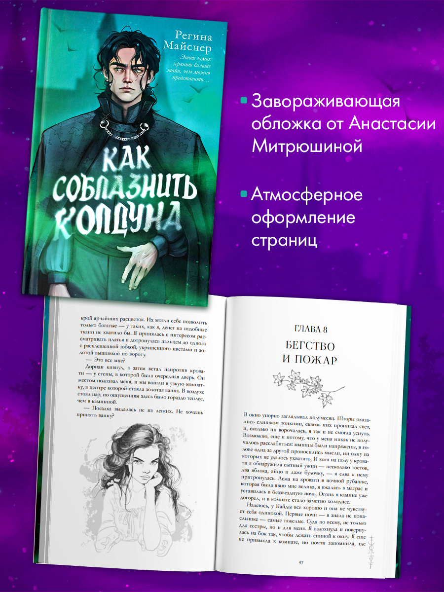 «Как соблазнить колдуна» — история о медленно зарождающихся чувствах с атмосферой «Ходячего замка Хоула» и «Красавицы и чудовища». Вас ждет стильное оформление страниц и изящные черно-белые мини-иллюстрации в оформлении глав!