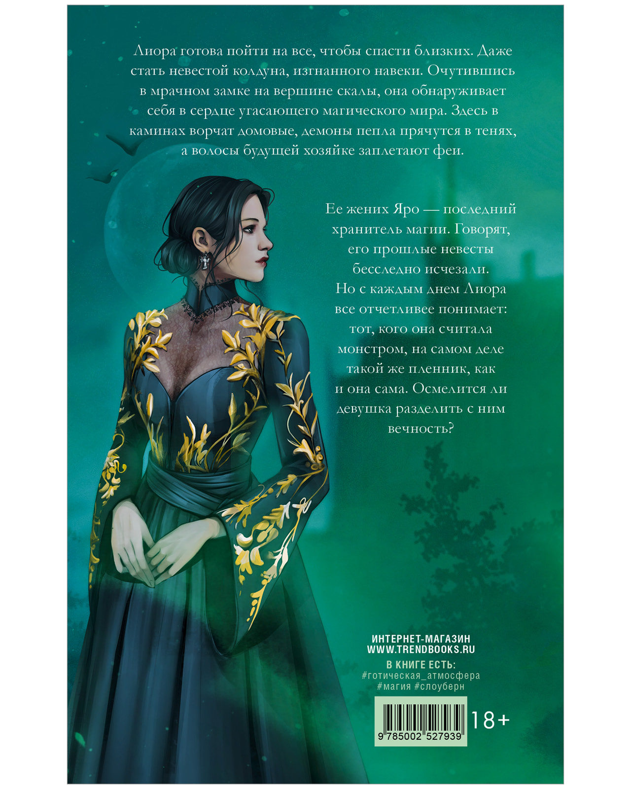 Лиора готова пойти на все, чтобы спасти близких. Даже стать невестой колдуна, изгнанного навеки. Очутившись в мрачном замке на вершине скалы, она обнаруживает себя в сердце угасающего магического мира. Здесь в каминах ворчат домовые, демоны пепла прячутся в тенях, а волосы будущей хозяйке заплетают феи.