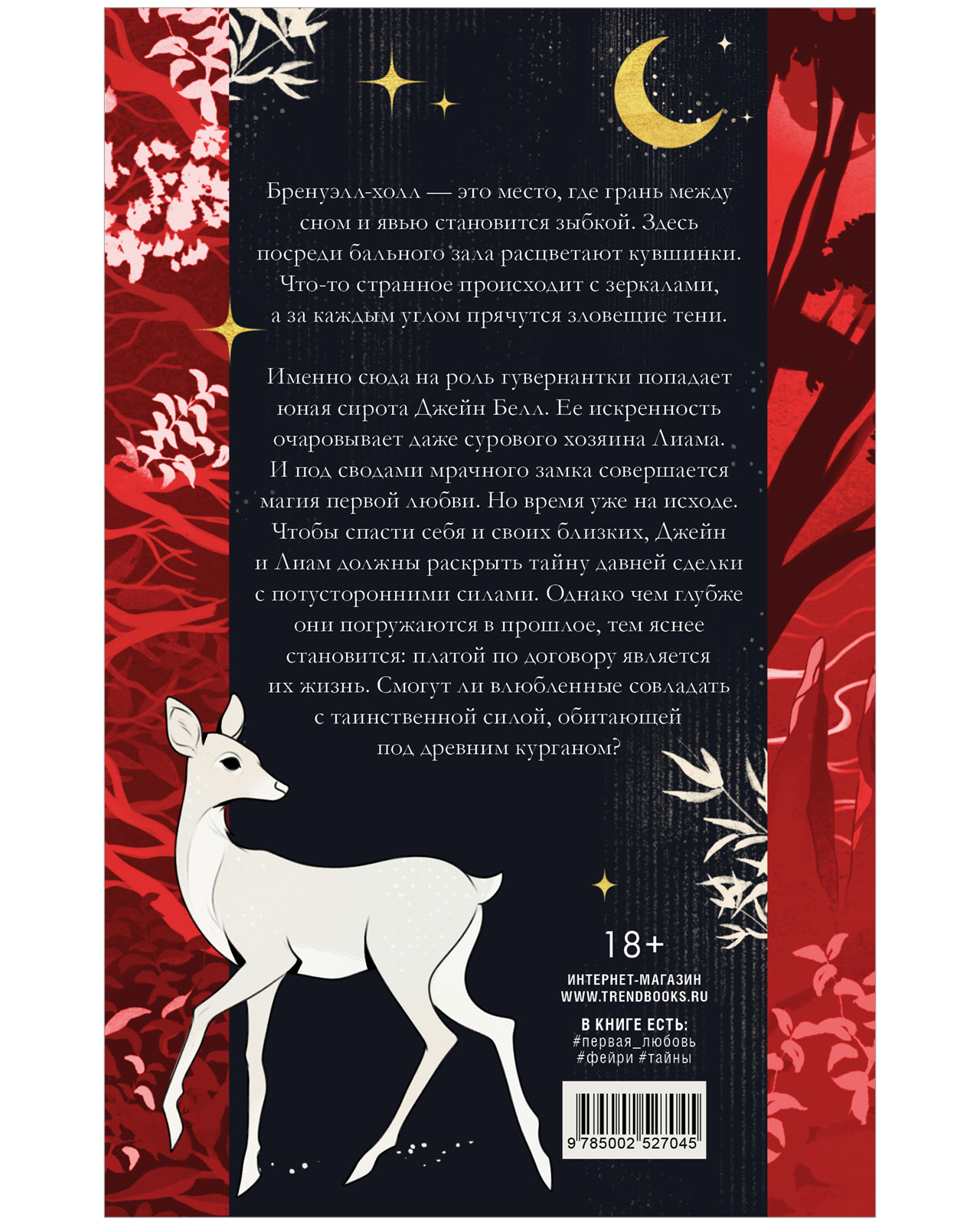 Именно сюда на роль гувернантки попадает юная сирота Джейн Белл. Ее искренность очаровывает даже сурового хозяина Лиама. И под сводами мрачного замка совершается магия первой любви. Но время уже на исходе. Чтобы спасти себя и своих близких, Джейн и Лиам должны раскрыть тайну давней сделки с потусторонними силами. Однако чем глубже они погружаются в прошлое, тем яснее становится: платой по договору является их жизнь.