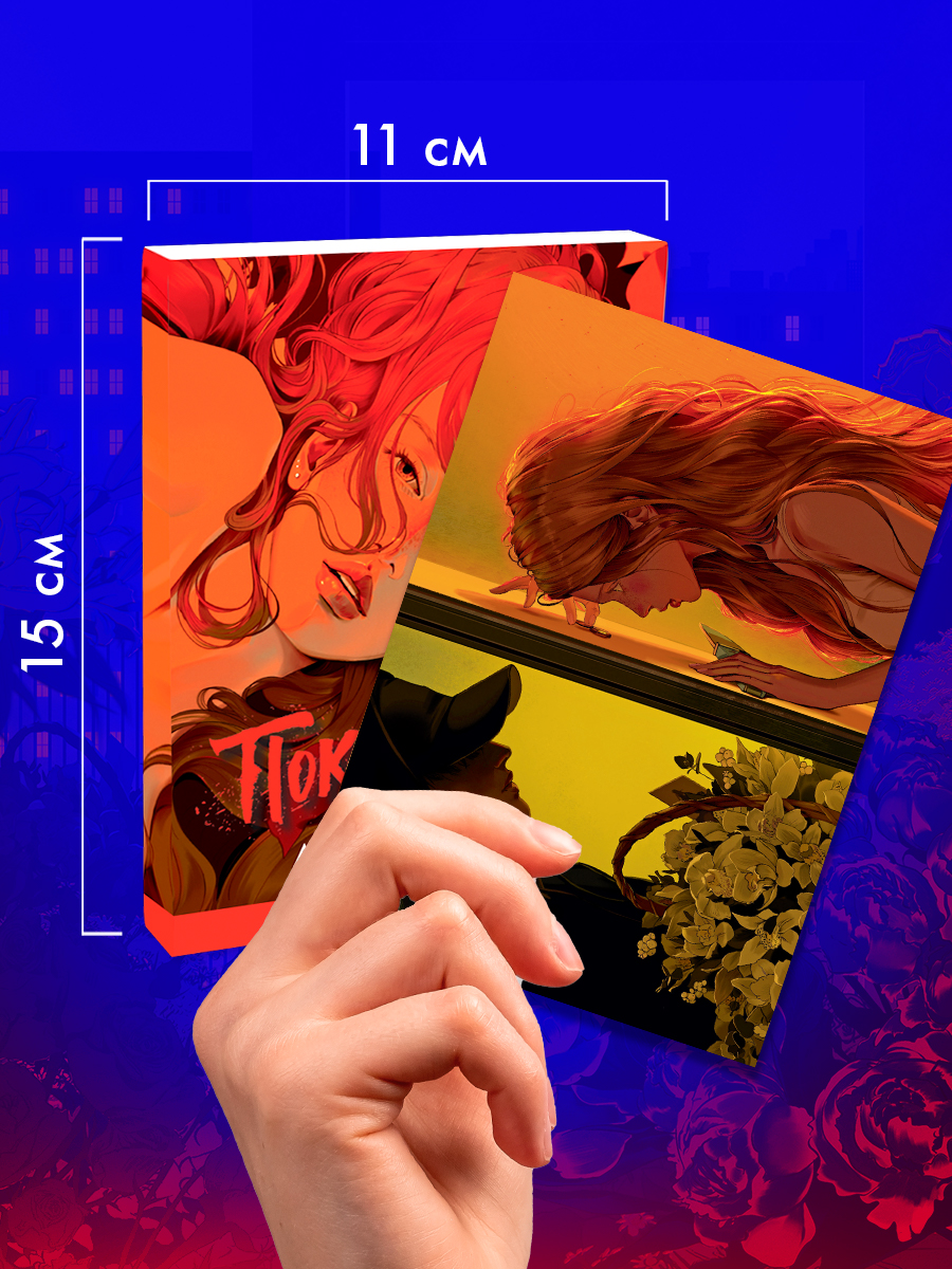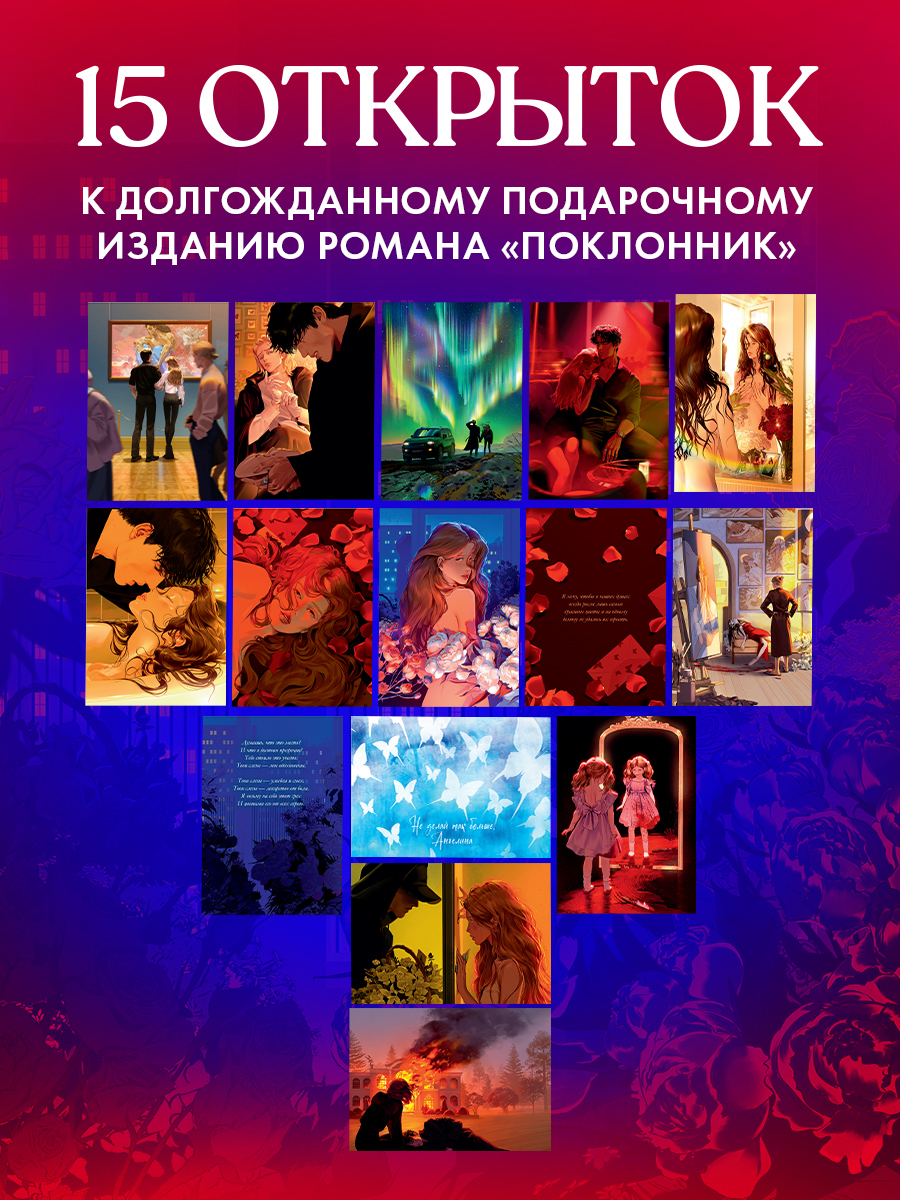 Набор из 15 открыток с артами Карины Яшагиной — идеальное дополнение к яркому романтическому триллеру Анны Джейн. На иллюстрациях, созданных несравненной Кариной Яшагиной специально к выходу подарочного издания, запечатлены самые сильные и волнующие сцены из романа.
