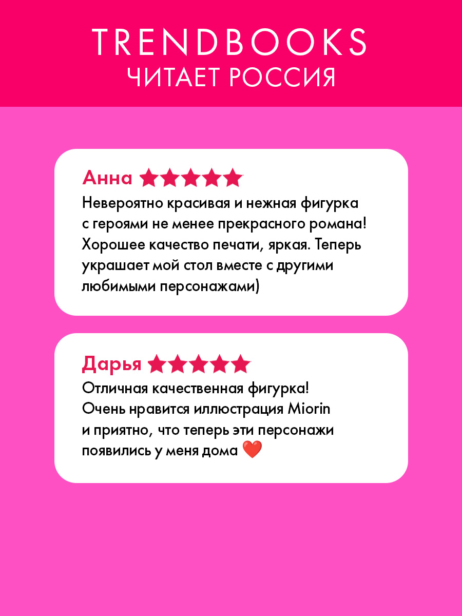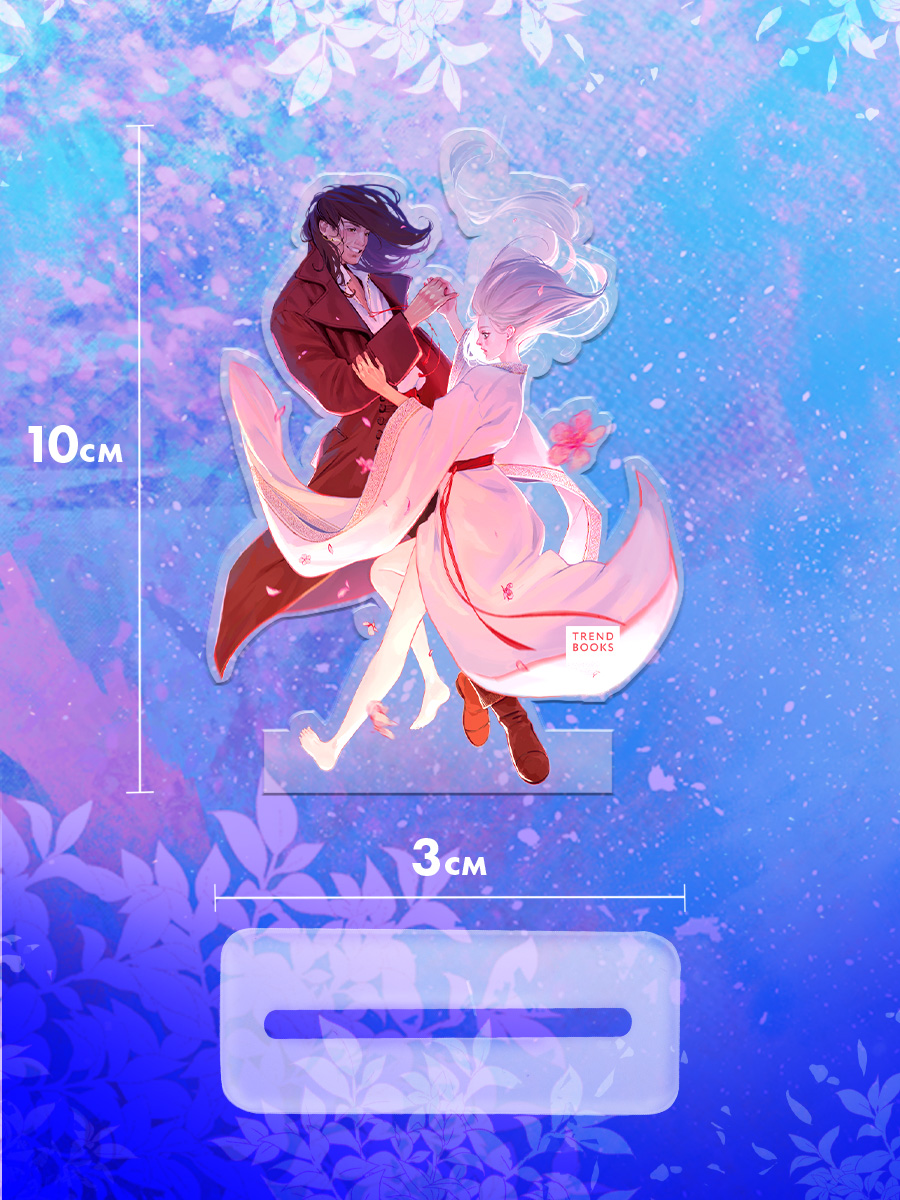 Высота фигурки с подставкой — 10 см. Эта акриловая фигурка с артом Miorin прекрасно украсит книжную полку, тумбочку или стол и понравится тем, кто читает романы Трендбукс, собирает мерч по книгам Дахи Тараториной и книжный мерч с любимыми героями.