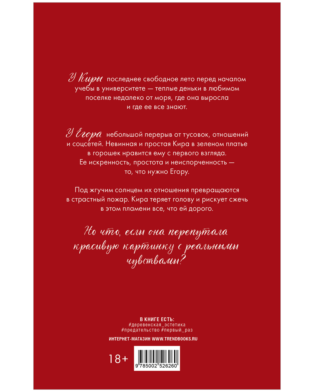 Под жгучим солнцем их отношения превращаются в страстный пожар. Кира теряет голову и рискует сжечь в этом пламени все, что ей дорого. Но что, если она перепутала красивую картинку с реальными чувствами?